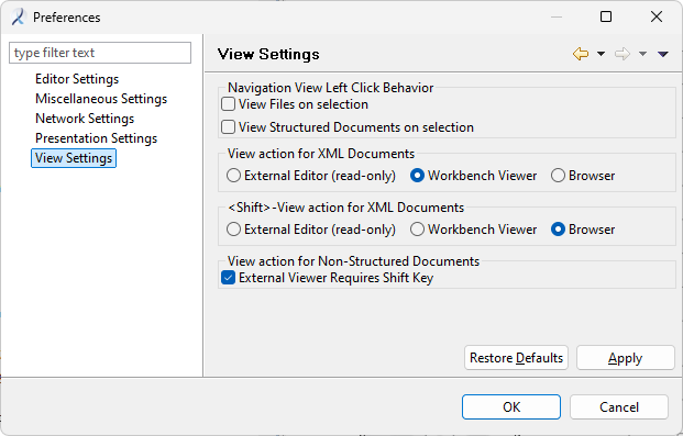Note: To open the Preferences dialog, click the gear icon () at the top right of the Workbench.
